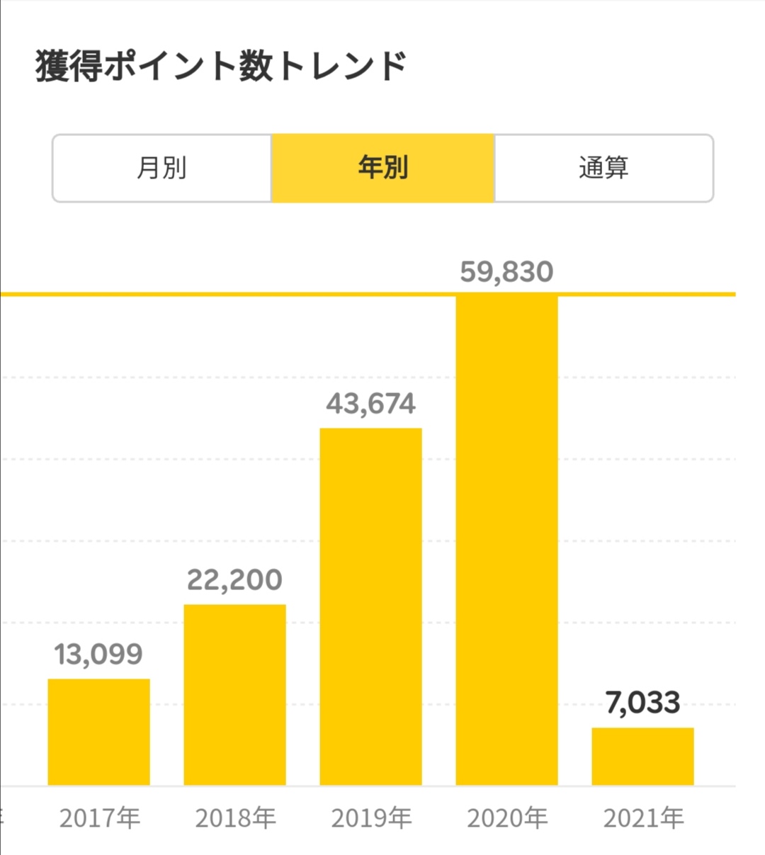 おそらく2021年度も、年間約6万~7万ポイントを獲得できると思われます。